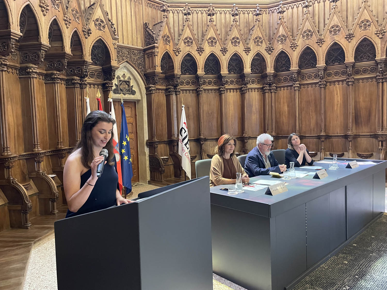 Tras la imposición de las becas, la alumna del Grado en Estudios Hispánicos, Paula María Diego Sánchez, ha sido la encargada de dar el discurso de su promoción. Asimismo, Silvina Dumanski y Ana Briceño han sido las representantes de los alumnos del Máster en ELE.